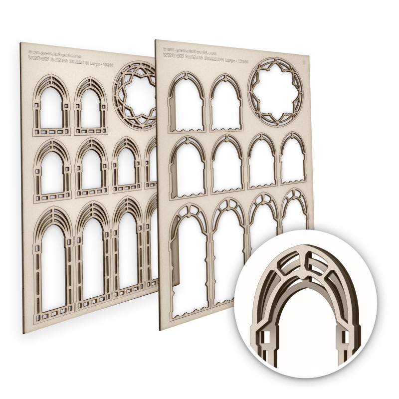 Fenêtres miniatures - Skeleton (Grandes) Les cadres de fenetres maquette sont des versions réduites et méticuleusement fabriquées de vraies fenêtres, con©ues pour être intégrées dans des dioramas modernes et fantastiques, tels que les maisons de poupées. Ces cadres jouent un rôle crucial dans l'amélioration du réalisme et des détails des dioramas, en définissant le style architectural et l'époque des maisons. Ils peuvent être installés sur des maisons à échelle réduite préfabriquées ou construites sur mesure à l'aide d'adhésifs à séchage transparent. Les outils indispensables pour créer, peindre et installer ces cadres sont des lames tranchantes, des pinces et des pinceaux à pointe fine. Les cadres de fenêtres miniatures sont essentiels pour donner vie aux petits modèles, qu'il s'agisse d'une charmante maison de poupée ou d'un diorama détaillé. Améliorez ou complétez votre finition en les combinant avec notre collection de vitraux miniatures, disponible exclusivement chez Green Stuff World, pour ajouter une touche étonnante et réaliste à vos créations. Nous recommandons d'utiliser de la colle blanche ou de la colle cyanoacrylate pour l'assemblage et de la peinture maquette pour la peinture, car ces cadres sont livrés non peints. Epaisseur : 2 mmTaille : 150x220 mmContenu : Chaque set comprend 2 parties (partie A + partie B) qui peuvent être utilisées ensemble pour plus de détails et de profondeur, ou séparément.
