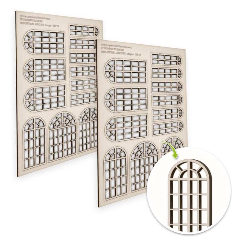 Fenêtres industrielles arquées Grandes Les cadres de fenetres maquette sont des versions réduites et méticuleusement fabriquées de vraies fenêtres, con©ues pour être intégrées dans des dioramas modernes et fantastiques, tels que les maisons de poupées. Ces cadres jouent un rôle crucial dans l'amélioration du réalisme et des détails des dioramas, en définissant le style architectural et l'époque des maisons. Ils peuvent être installés sur des maisons à échelle réduite préfabriquées ou construites sur mesure à l'aide d'adhésifs à séchage transparent. Les outils indispensables pour créer, peindre et installer ces cadres sont des lames tranchantes, des pinces et des pinceaux à pointe fine. Les cadres de fenêtres miniatures sont essentiels pour donner vie aux petits modèles, qu'il s'agisse d'une charmante maison de poupée ou d'un diorama détaillé. Améliorez ou complétez votre finition en les combinant avec notre collection de vitraux miniatures, disponible exclusivement chez Green Stuff World, pour ajouter une touche étonnante et réaliste à vos créations. Nous recommandons d'utiliser de la colle blanche ou de la colle cyanoacrylate pour l'assemblage et de la peinture maquette pour la peinture, car ces cadres sont livrés non peints. Epaisseur : 2 mmTaille : 150x220 mmContenu : Chaque ensemble comprend 2 lots égaux