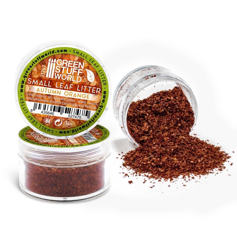 Feuilles Naturelles Petites de modélisme Feuilles de modélisme d'origine naturelle, tamisées et filtrées pour ne présenter que des feuilles de petite taille, parfaites pour décorer les socles, les dioramas, les arbres et les buissons. Convient aux échelles de 20mm (1/72) à 45mm (1/22). Facile à coller avec de la colle blanche, de la colle pour flocage ou de la colle cyanoacrylate. Taille de la feuille 1-2 mm Couleur : Comme il s'agit d'un produit naturel, la couleur finale peut varier légèrement par rapport aux photos. Poids net: environ 10g. * Assez pour décorer plusieurs armées