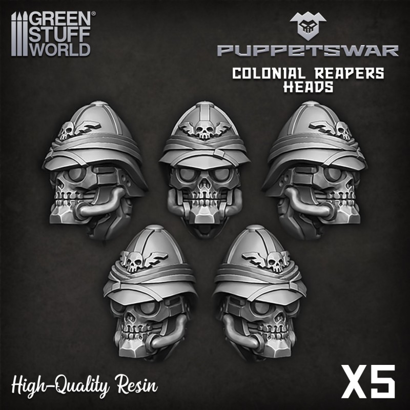 Têtes - Faucheurs Coloniaux Ensemble de pièces en résine de haute qualité, con©u pour s'adapter aux figurines de wargames de 28/32mm, y compris les figurines GW©. Ces pièces ajouteront une touche créative à une collection existante de figurines de science-fiction, ou permettront même de créer des unités et des figurines entièrement nouvelles et sur mesure. Fourni non assemblé et non peint. Nous recommandons de tester les poses et l'assemblage de chaque figurine du set avant de la coller. Certains composants peuvent être laissés non collés, aimantés avec des aimants de 3x1mm, ou maintenus en place avec du Blu-Tac ou similaire pour vous permettre de changer d'arme. Marque : Puppetswar Matériau : résine de haute qualité Contenu : 5 têtes GW© est une marque déposée de Games Workshop Limited. Les produits proposés ne sont pas affiliés, autorisés ou approuvés par cette société. Green Stuff World fabrique et commercialise uniquement des produits compatibles con©us pour être utilisés avec cette gamme de figurines et d'autres gammes similaires.