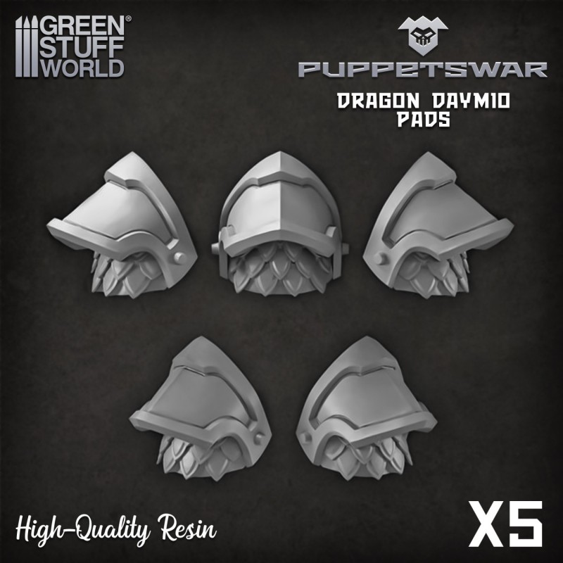 Epaulettes - Dragon Daymio Ensemble de pièces en résine de haute qualité, con©u pour s'adapter aux figurines de wargames de 28/32mm, y compris les figurines GW©. Ces pièces ajouteront une touche créative à une collection existante de figurines de science-fiction, ou permettront même de créer des unités et des figurines entièrement nouvelles et sur mesure. Fourni non assemblé et non peint. Marque : Puppetswar Matériau : résine de haute qualité Contenu : 5 ©?paulettes GW© est une marque déposée de Games Workshop Limited. Les produits proposés ne sont pas affiliés, autorisés ou approuvés par cette société. Green Stuff World fabrique et commercialise uniquement des produits compatibles con©us pour être utilisés avec cette gamme de figurines et d'autres gammes similaires.