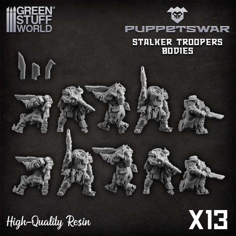 Corps Torses et jambes Ensemble de pièces en résine de haute qualité, con©u pour s'adapter aux figurines de wargames de 28/32mm, y compris les figurines GW©. Ces pièces ajouteront une touche créative à une collection existante de figurines de science-fiction, ou permettront même de créer des unités et des figurines entièrement nouvelles et sur mesure. Fourni non assemblé et non peint. Marque : Puppetswar Matériau : résine de haute qualité La hauteur maximale d'un modèle, du pied au sommet du dos, est de 30 mm. Les modèles sont dotés de fentes pour des aimants de 3x1 mm. GW© est une marque déposée de Games Workshop Limited. Les produits proposés ne sont pas affiliés, autorisés ou approuvés par cette société. Green Stuff World fabrique et commercialise uniquement des produits compatibles con©us pour être utilisés avec cette gamme de figurines et d'autres gammes similaires.