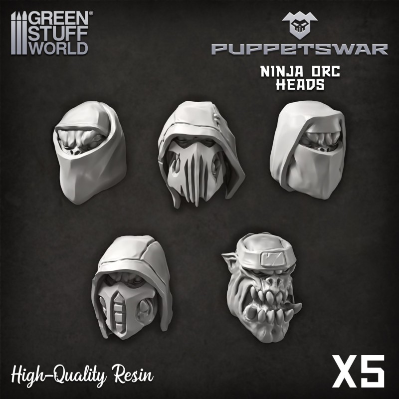 Têtes - Orques Ninja Ensemble de pièces en résine de haute qualité, con©u pour s'adapter aux figurines de wargames de 28/32mm, y compris les figurines GW©. Ces pièces ajouteront une touche créative à une collection existante de figurines de science-fiction, ou permettront même de créer des unités et des figurines entièrement nouvelles et sur mesure. Fourni non assemblé et non peint. Marque : Puppetswar Matériau : résine de haute qualité Contenu : 5 têtes GW© est une marque déposée de Games Workshop Limited. Les produits proposés ne sont pas affiliés, autorisés ou approuvés par cette société. Green Stuff World fabrique et commercialise uniquement des produits compatibles con©us pour être utilisés avec cette gamme de figurines et d'autres gammes similaires.