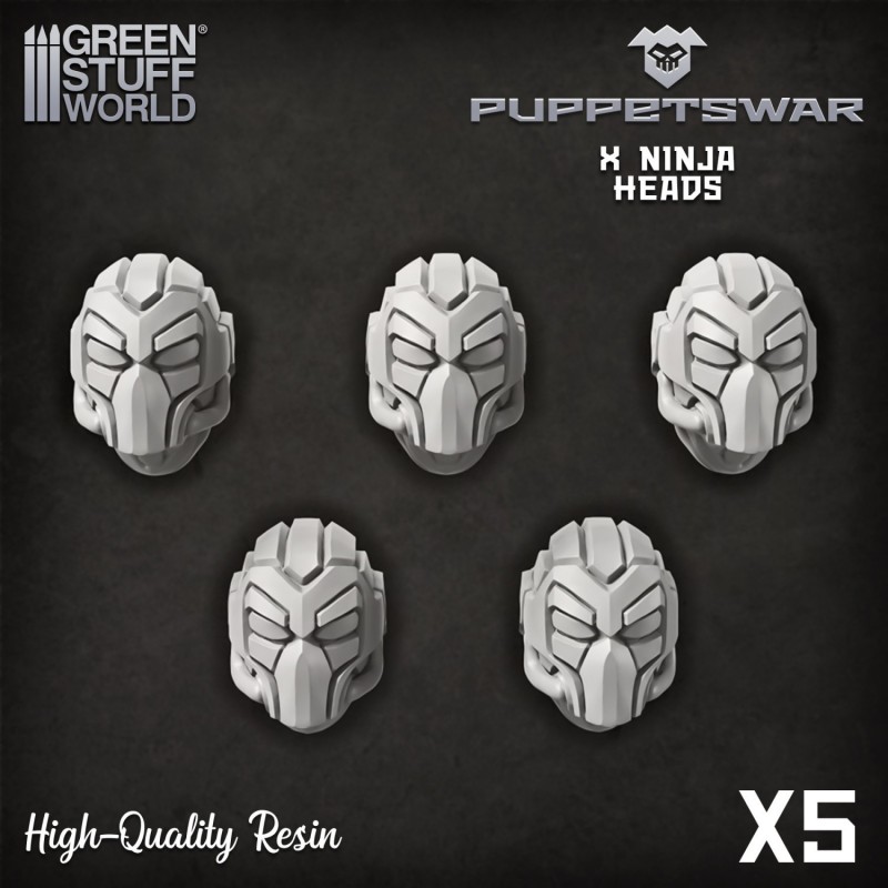 Têtes - Ninja Ensemble de pièces en résine de haute qualité, con©u pour s'adapter aux figurines de wargames de 28/32mm, y compris les figurines GW©. Ces pièces ajouteront une touche créative à une collection existante de figurines de science-fiction, ou permettront même de créer des unités et des figurines entièrement nouvelles et sur mesure. Fourni non assemblé et non peint. Marque : Puppetswar Matériau : résine de haute qualité Contenu : 5 têtes GW© est une marque déposée de Games Workshop Limited. Les produits proposés ne sont pas affiliés, autorisés ou approuvés par cette société. Green Stuff World fabrique et commercialise uniquement des produits compatibles con©us pour être utilisés avec cette gamme de figurines et d'autres gammes similaires.