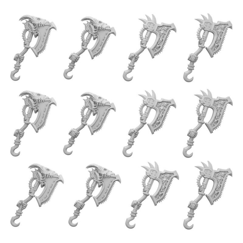 Ce set comprend 12 axes, et vous permettra d'assembler vos propres Space Marines© compatibles en assemblant le reste des pièces des designs du DakkaDakka Store, ainsi que de convertir et personnaliser votre propre Space Marine de Warhammer 40k© compatibles . Elles sont imprimées en 3D en ABS pour plus de flexibilité et de résistance aux cassures accidentelles, et sont parfaites pour les figurines à l'échelle 1:48, tout en étant compatibles avec vos wargames et jeux de société préférés.