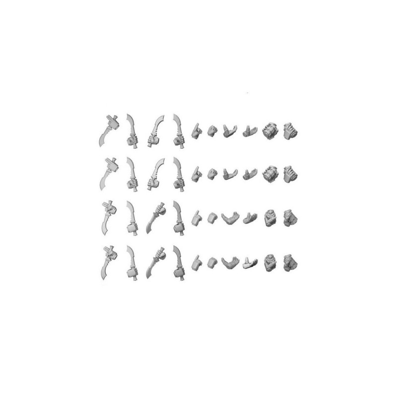 Ce kit comprend 44 mains (8 mains gauches avec couteau, 8 mains droites avec couteau, 4 mains gauches avec grenade, 4 mains droites avec grenade, 10 mains droites sans rien, 10 mains gauches sans rien), et vous permettra d'assembler vos propres Space Marines© compatibles en assemblant le reste des pièces des designs du DakkaDakka Store, ainsi que de convertir et personnaliser votre propre Space Marine de Warhammer 40k© compatibles . Elles sont imprimées en 3D en ABS pour plus de flexibilité et de résistance aux cassures accidentelles, et sont parfaites pour les figurines à l'échelle 1:48, tout en étant compatibles avec vos wargames et jeux de société préférés.