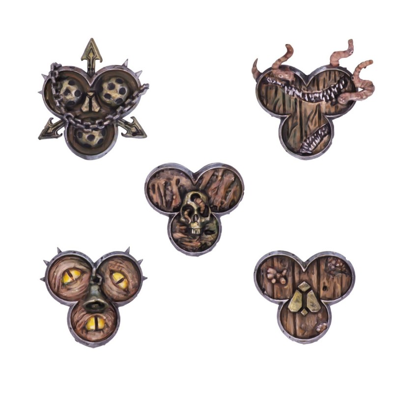 Chaque set comprend 10 x Boucliers Targe à parer du Dieu de la Peste en résine.