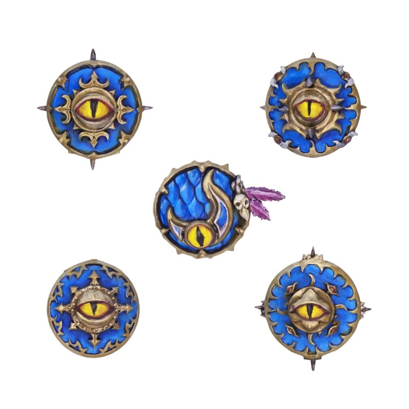 Chaque set comprend 10 x Boucliers Targe à parer du Dieu du Changement en résine.