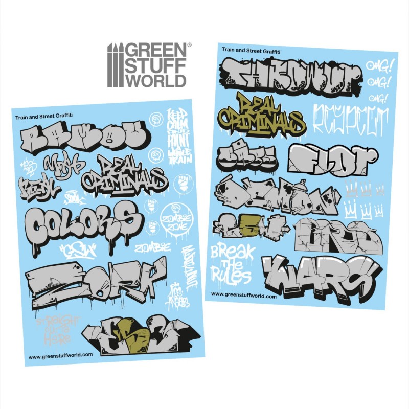 Cet ensemble comprend 2 feuilles de décalques de glissade d??eau opaques et très détaillées en couleur. Les décalques doivent être appliqués avec de l??eau, aucun solvant n??est requis. Vous pouvez également utiliser des Decal Softener GSW et Decal Fixer GSW pour améliorer et protéger le fini des surfaces inégales ou rugueuses.Chaque feuille de décalcomanie de glissade d??eau contient une grande variété de graffitis de différentes tailles et formes qui vous permettront de personnaliser votre champ de bataille, votre bâtiment et votre diorama.©?chelle aproximative: 28-32-54mm (1/58 - 1/54 -1/32)Feuilles: 2 par paquetTaille: 148 x 210mm (A5)INSTRUCTIONS DE BASE1.- Découpez le décalque aussi près que possible du bord extérieur de l'image. Pour de meilleurs résultats, utilisez une nouvelle lame dans votre cutter.2.- Prenez le décalque avec votre pince à épiler et laissez-le tremper dans l'eau pendant environ 20 secondes. L'eau chaude peut aider avec ce processus.3.- Utilisez un pinceau pour pousser délicatement le décalque de la feuille sur le modèle.INSTRUCTIONS AVANC©?ES4.- Avant de l'appliquer sur le modèle, une fois que le décalque a trempé suffisamment longtemps, appliquez un peu de GSW Decal Fixer sur la surface du modèle sur lequel vous prévoyez de poser votre décalque. GSW Decal Fixer protège la peinture en dessous et lisse la surface, aidant ainsi à empêcher l'argenture. Utilisez un pinceau pour pousser délicatement le décalque de la feuille et sur le modèle. S'il est difficile de déplacer le décalque, ajouter un peu plus de fixateur de décalque GSW ou d'eau aidera le décalque à flotter sur la surface jusqu'à ce qu'il soit correctement positionné.5.- Si la surface sur laquelle vous souhaitez appliquer le décalque plat est incurvée, à la manière d'un épaulière, votre décalque pourrait se froisser. Pour éviter cela, une fois que votre décalque est en place, appliquez GSW Decal Softener. Laissez l??adoucissant réagir et il aidera à éliminer les rides, car il s??adapte à la surface incurvée dessous. Répétez cette étape 2-3 fois jusqu'à ce que les rides sont supprimées.Enlevez le surplus avec un coton-tige pour éliminer le liquide coincé entre la décalcomanie et la surface. Faites rouler l??écouvillon sur l??autocollant pour qu??il ne se soulève pas de la surface. Vous pouvez également utiliser une serviette en papier pour appuyer sur la décalcomanie dans un mouvement de roulement pour éliminer l'excès de liquide. En utilisant GSW Decal Softener, les découpes en relief pour éliminer les plis de votre décalcomanie ne seront pas nécessaires.6.- Enfin, appliquez de nouveau GSW Decal Fixer sur le décalque et la surface du modèle sur lequel nous travaillons pour unifier la surface. Enduisez-le normalement avec un vernis mat ou brillant si vous estimez qu'il est nécessaire de retirer ou d'ajouter un fini brillant.