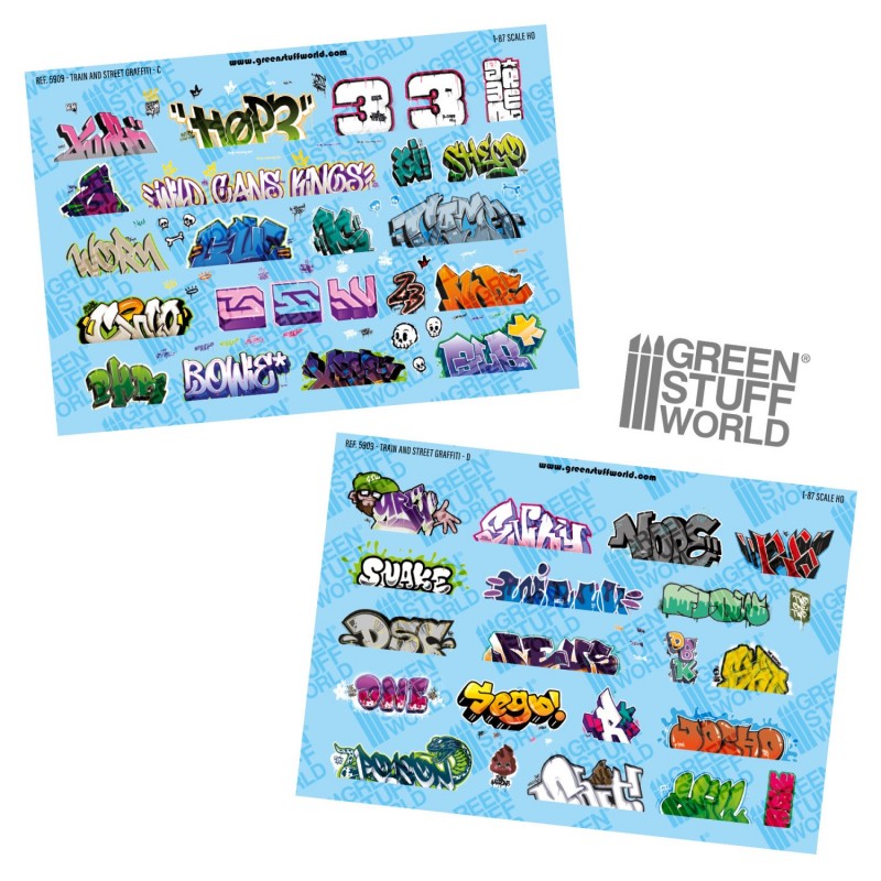 Decalcomanies a l'eau graffiti pour trains 1/87 HO Cet ensemble comprend 2 feuilles de décalques de glissade d??eau opaques et très détaillées en couleur. Les décalques doivent être appliqués avec de l??eau, aucun solvant n??est requis. Vous pouvez également utiliser des Decal Softener GSW et Decal Fixer GSW pour améliorer et protéger le fini des surfaces inégales ou rugueuses.Chaque feuille de décalcomanies pour trains contient une grande variété de graffitis de différentes tailles et formes qui vous permettront de personnaliser vos wagons de train et autres véhicules ferroviaires dans votre maquette ou votre diorama. Certains motifs comportent des découpes dans la partie inférieure afin de reproduire ceux que l'on trouve dans la réalité, car de nombreux trains sont souvent interrompus par les cadres des portes, le bas du wagon ou des éléments mécaniques. Les artistes urbains peignent sur ce qui est disponible et ne continuent souvent pas sous certains éléments.©?chelle: 1/87 HOFeuilles: 2 par paquetTaille: 148 x 210mm (A5)INSTRUCTIONS DE BASE1.- Découpez le décalque aussi près que possible du bord extérieur de l'image. Pour de meilleurs résultats, utilisez une nouvelle lame dans votre cutter.2.- Prenez le décalque avec votre pince à épiler et laissez-le tremper dans l'eau pendant environ 20 secondes. L'eau chaude peut aider avec ce processus.3.- Utilisez un pinceau pour pousser délicatement le décalque de la feuille sur le modèle.INSTRUCTIONS AVANC©?ES4.- Avant de l'appliquer sur le modèle, une fois que le décalque a trempé suffisamment longtemps, appliquez un peu de GSW Decal Fixer sur la surface du modèle sur lequel vous prévoyez de poser votre décalque. GSW Decal Fixer protège la peinture en dessous et lisse la surface, aidant ainsi à empêcher l'argenture. Utilisez un pinceau pour pousser délicatement le décalque de la feuille et sur le modèle. S'il est difficile de déplacer le décalque, ajouter un peu plus de fixateur de décalque GSW ou d'eau aidera le décalque à flotter sur la surface jusqu'à ce qu'il soit correctement positionné.5.- Si la surface sur laquelle vous souhaitez appliquer le décalque plat est incurvée, à la manière d'un épaulière, votre décalque pourrait se froisser. Pour éviter cela, une fois que votre décalque est en place, appliquez GSW Decal Softener. Laissez l??adoucissant réagir et il aidera à éliminer les rides, car il s??adapte à la surface incurvée dessous. Répétez cette étape 2-3 fois jusqu'à ce que les rides sont supprimées.Enlevez le surplus avec un coton-tige pour éliminer le liquide coincé entre la décalcomanie et la surface. Faites rouler l??écouvillon sur l??autocollant pour qu??il ne se soulève pas de la surface. Vous pouvez également utiliser une serviette en papier pour appuyer sur la décalcomanie dans un mouvement de roulement pour éliminer l'excès de liquide. En utilisant GSW Decal Softener, les découpes en relief pour éliminer les plis de votre décalcomanie ne seront pas nécessaires.6.- Enfin, appliquez de nouveau GSW Decal Fixer sur le décalque et la surface du modèle sur lequel nous travaillons pour unifier la surface. Enduisez-le normalement avec un vernis mat ou brillant si vous estimez qu'il est nécessaire de retirer ou d'ajouter un fini brillant.