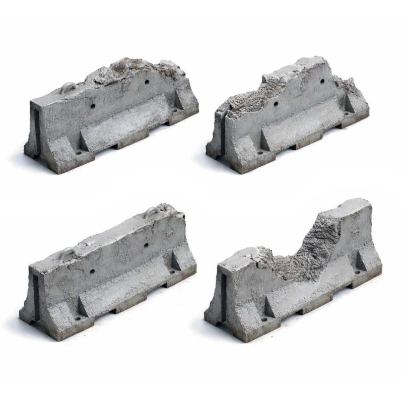 Les murs Jersey, ainsi appelées parce qu'elles ont été installées pour la première fois dans le New Jersey pour diviser plusieurs voies d'une autoroute, évitant ainsi un grand nombre d'accidents, sont aujourd'hui courantes pour bloquer ou fermer des zones. Dans le catalogue de Green Stuff World, vous pouvez les trouver en deux formats : les murs de Jersey normales et les murs de Jersey cassées. Ces dernières sont parfaites pour les environnements post-apocalyptiques, accidentés, abandonnés, etc.