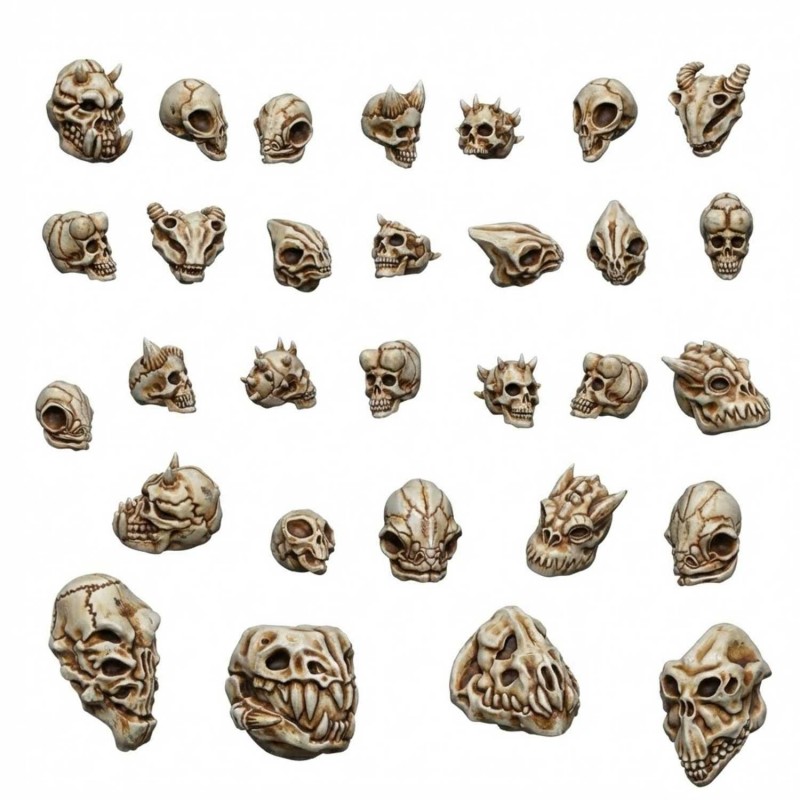 Revitalisez votre expérience de jeu avec notre collection de bit exclusive, compatible avec Warhammer bits à l'échelle 1:48, des ensembles de pièces en résine imprimées en 3D qui transformeront votre champ de bataille et vos socles pour figurines en un décor époustouflant. Notre boutique en ligne est spécialisée dans l'offre de sets d'os, de crânes et de squelettes détaillés, tous con©us pour être compatibles avec une variété de jeux de figurines, y compris 9Age©, WH Fantasy©, WH40k© et le récemment renaissant Warhammer Old World©.
