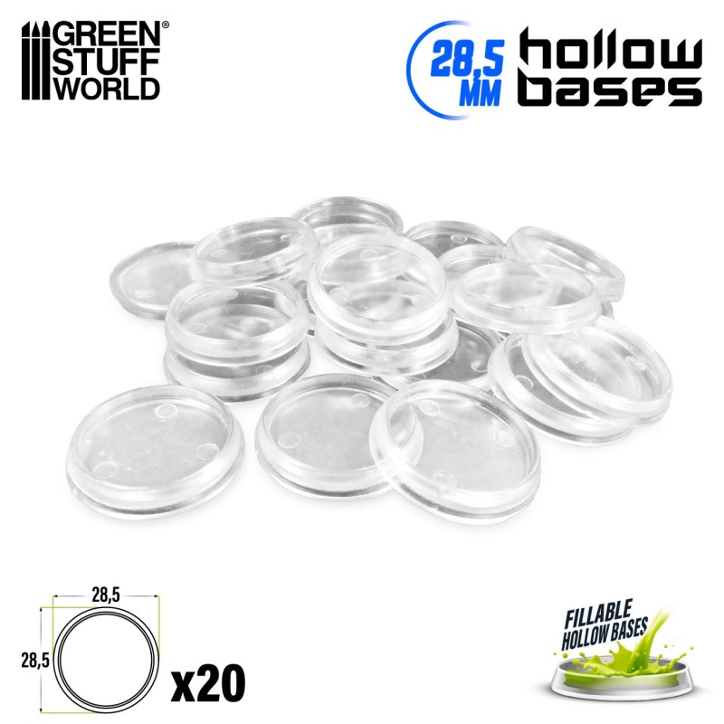 Socles en plastique transparents avec CREUX - Rond 28,5mm