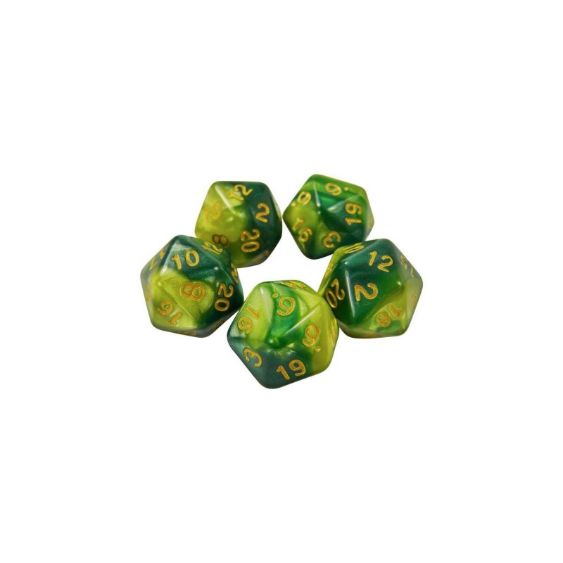 5x D20 20mm Dés de Jeu - Vert Marbre