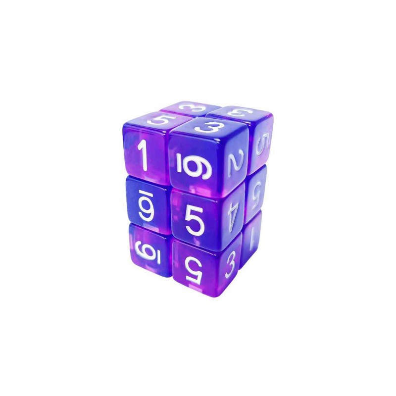 12x D6 16mm Dés de Jeu - Bleu/Lilas Transparent