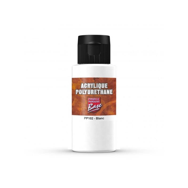 Blanc (pot de 60ml) BASE ACRYLIQUE POLYURETHANE Le confort de l'acrylique, la résistance du polyurethane. Cette base s'applique au pinceau ou à l'aérographe. Sa finesse et se parfaite adhérence garantissent l'application harmonieuse de vos teintes et leur excellente tenue. Tous les accéssoires se nettoient à l'eau.