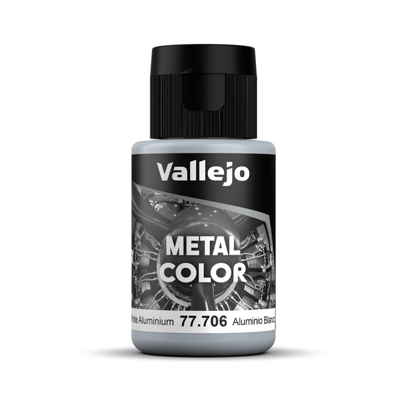 Composée de pigments d’aluminium, dernière génération, elle donne aux couleurs une résistance et une adhérence exceptionnelles. Ces teintes peuvent s’appliquer directement sur vos pièces mais il est néanmoins conseillé d’utiliser l’apprêt Noir Brillant 77660, afin de faire ressortir les tons si caractéristiques de l’aluminium. Les couleurs sont miscibles entre elles directement dans le godet de votre aérographe. La Metal Color sèche quasiment instantanément sur votre support. Cela facilite le processus de vieillissement par l’application immédiate de produits tels que wash et pigments et la réalisation de brossages à sec. Nous conseillons néanmoins de patienter une heure avant de manipuler votre pièce peinte.