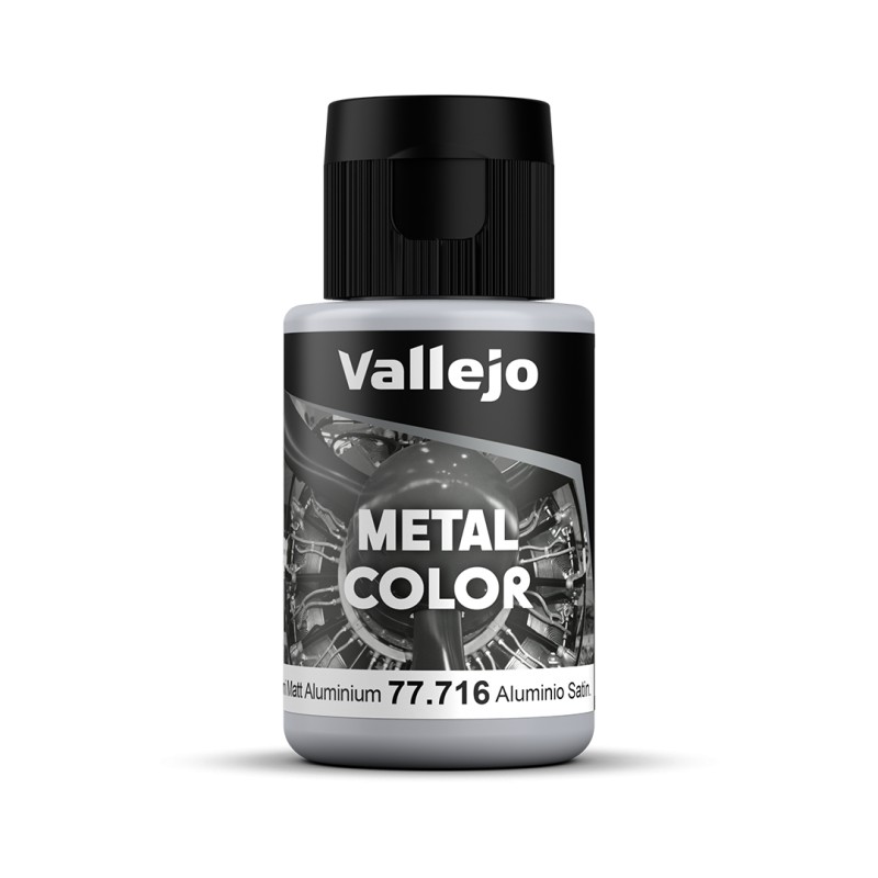Composée de pigments d’aluminium, dernière génération, elle donne aux couleurs une résistance et une adhérence exceptionnelles. Ces teintes peuvent s’appliquer directement sur vos pièces mais il est néanmoins conseillé d’utiliser l’apprêt Noir Brillant 77660, afin de faire ressortir les tons si caractéristiques de l’aluminium. Les couleurs sont miscibles entre elles directement dans le godet de votre aérographe. La Metal Color sèche quasiment instantanément sur votre support. Cela facilite le processus de vieillissement par l’application immédiate de produits tels que wash et pigments et la réalisation de brossages à sec. Nous conseillons néanmoins de patienter une heure avant de manipuler votre pièce peinte.