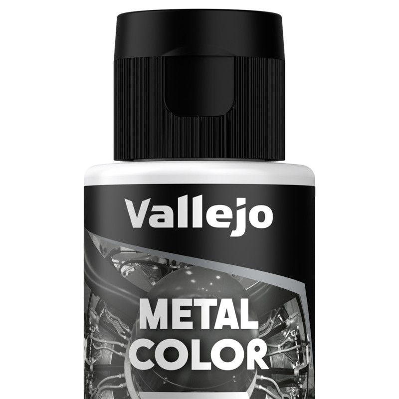 Composée de pigments d’aluminium, dernière génération, elle donne aux couleurs une résistance et une adhérence exceptionnelles. Ces teintes peuvent s’appliquer directement sur vos pièces mais il est néanmoins conseillé d’utiliser l’apprêt Noir Brillant 77660, afin de faire ressortir les tons si caractéristiques de l’aluminium. Les couleurs sont miscibles entre elles directement dans le godet de votre aérographe. La Metal Color sèche quasiment instantanément sur votre support. Cela facilite le processus de vieillissement par l’application immédiate de produits tels que wash et pigments et la réalisation de brossages à sec. Nous conseillons néanmoins de patienter une heure avant de manipuler votre pièce peinte.