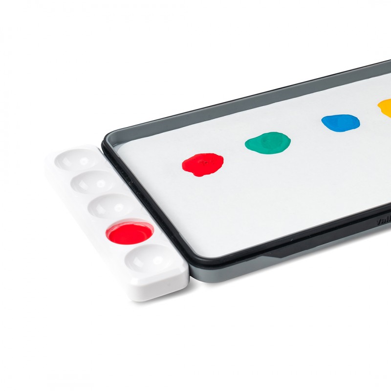 Fabriquée en plastique ABS, elle comporte 5 godets pour mélangerou diluer les couleurs, ce qui permet de gagner de la place surle papier. Elle se fixe sur les côtés de la base de la palette humidegrâce à des aimants.