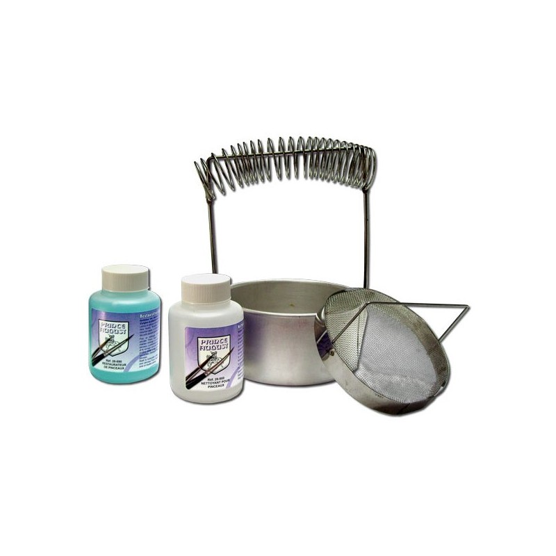 Le Pincelier garde vos pinceaux maintenus immergés en suspension. Le Nettoyant nettoie, humidifie et adoucit les poils du pinceau. Le Restaurateur revitalise vos pinceaux, leur rend leur souplesse d’origine et préserve leur pointe durablement.